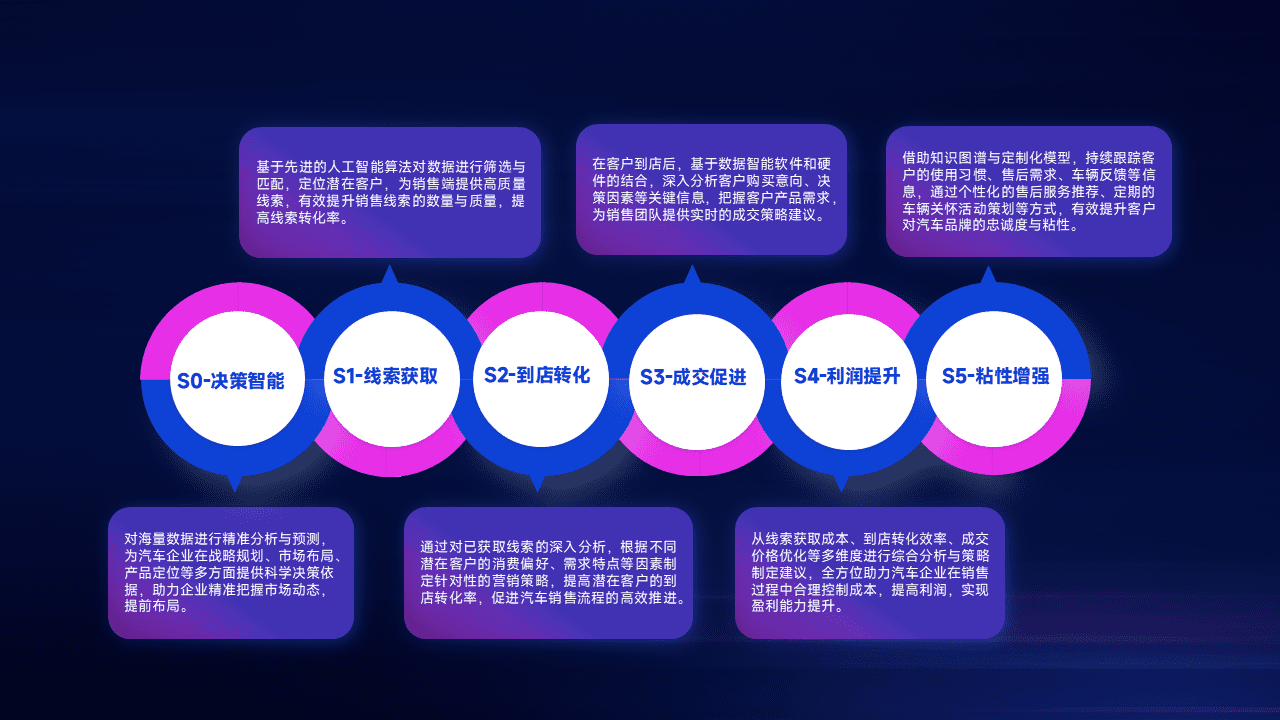 通过拓宽潜在客户来源、、优化线索分配并提高到店转化率,,,以增强销售效率。。。同时,,利用线索数据不断优化分析模型,,,,有效提升转化率,,扩大营销影响力。。
